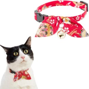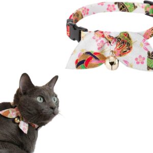 Cotton Bowtie Cat Collar with Bell 2 Pack Adjustable Breakaway Kitten Collars with Removeable Bow Pink Girl Cat Collars