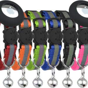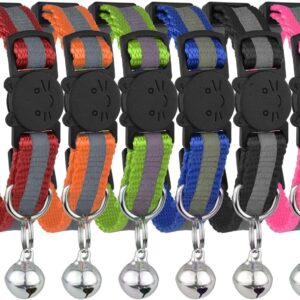 Cat Collar with Bell, Set of 6, Solid & Safe Collars for Cats, Nylon, Mixed Colors, Pet Collar, Breakaway Cat Collar Charms