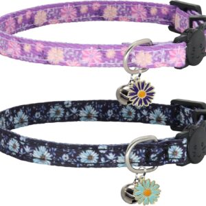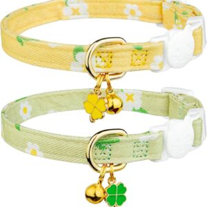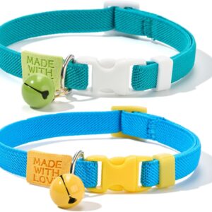 Cat Collar Breakaway, 2 Pack Cotton Cats Collars with Bells, Cute Dinosaurs Shaped for Girl Boy Kittens