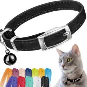 Leather Cat Collar with Bell – Kitten Collar, Small and Big Cat Collar for Boy Cats, Girl Cats with Safety Elastic Strap (Neck Fit 8-11, Mint Green)