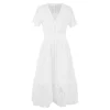• New Korean Fashion Dress 2022 Summer Ladies V-Neck Hollow Out Embroidery Short Sleeve Mid-Calf Length White Dress Boho Beach $39.09