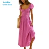 Product Name: 2025 Boutique Red Casual Dress Lace-up High Waist New Stitching Round Neck Fashion Long Dress