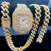 • 3PC/Set Crystal Watch for Men Necklace Bracelet Jewelry Set Men Bling Gold Silver Diamond Iced Out Cuban Chain Clock Relogio $8.03