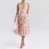 Elegant English Vintage Rose Print Georgette Halter Sundress Ideal for Summer Women Clothing