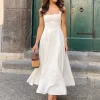 Elegant Fashion Embroidered Bow Hidden Pocket Smocked Strapless Maxi Dress Women’ Summer Outfit for Vacation Party