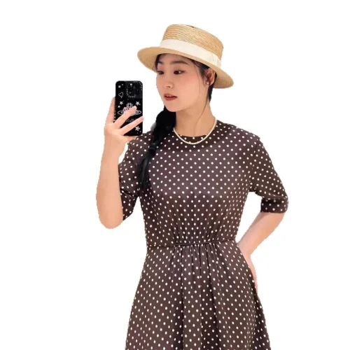 Product Name: IC2025 Spring Summer New Satin Casual Dresses Elegant Mid-Length Crepe Elastic Waist izable Brand Solid