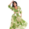Product Name: MereSports Premium Women’s Merino Wool Dress U-Neck Knitted with Summer Fabric Dyed Print Pattern Casual Midi Length