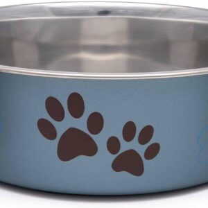 Loving Pets Bella Dog Bowls- Stainless Steel Dog & Cat Bowls – Spill Proof Dog Food Bowl, Cat Bowl, Puppy Essentials & Pet Supplies Great for Home & Travel (Medium 20-35 lbs, Artichoke)