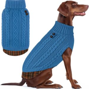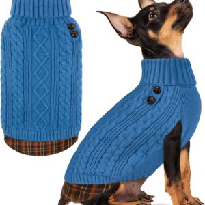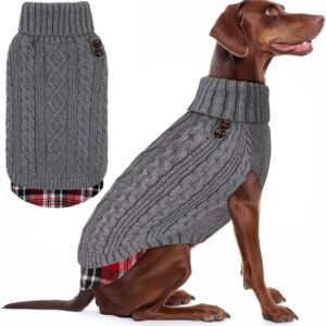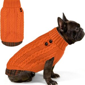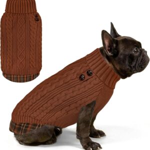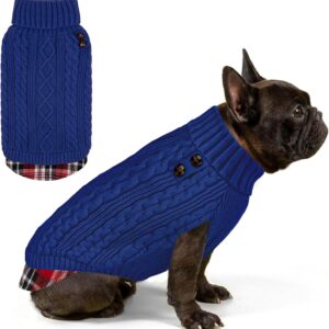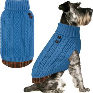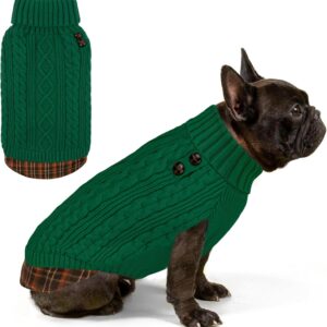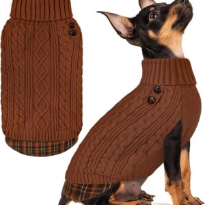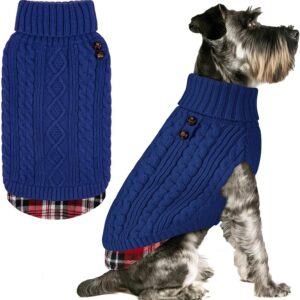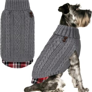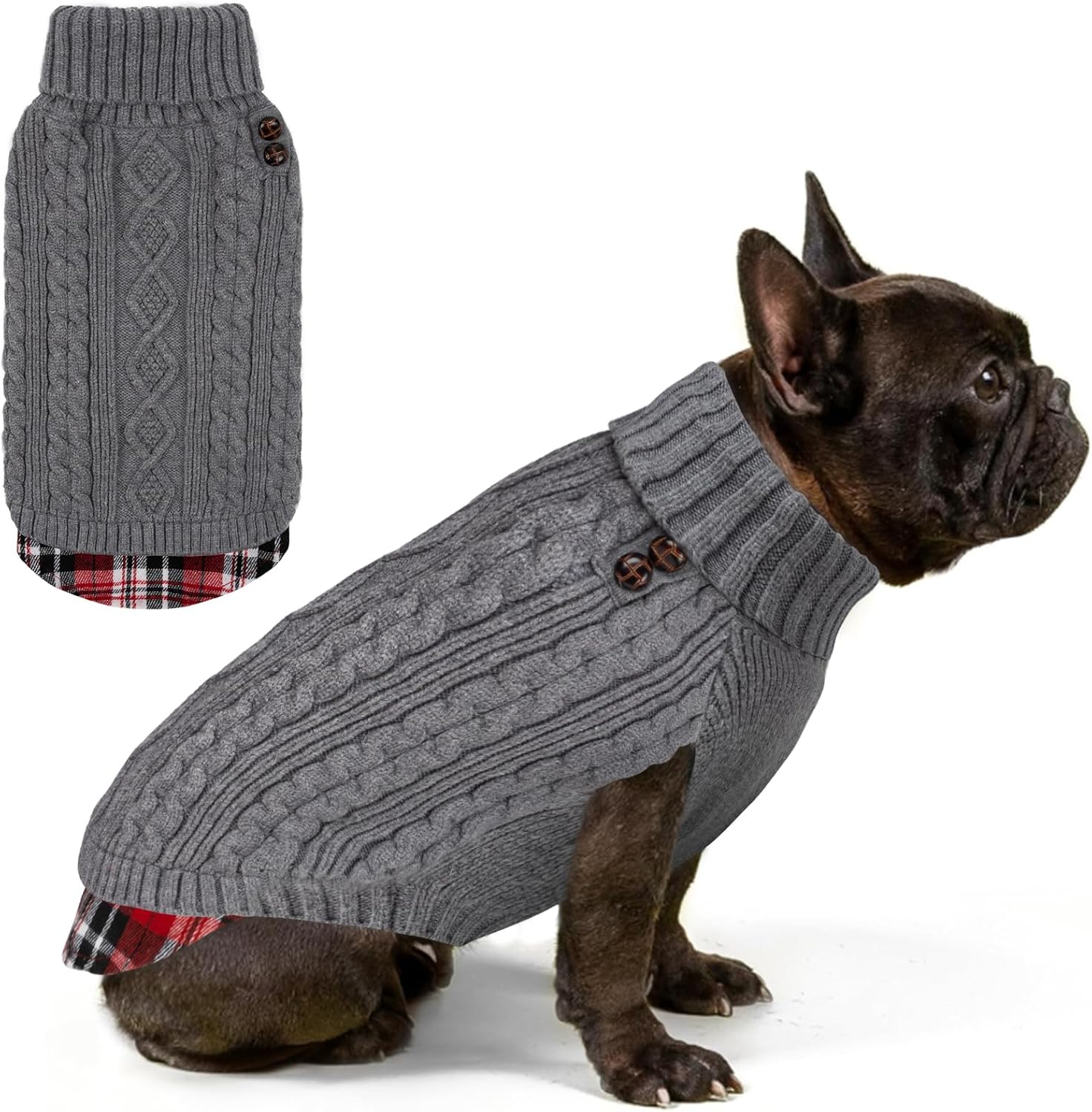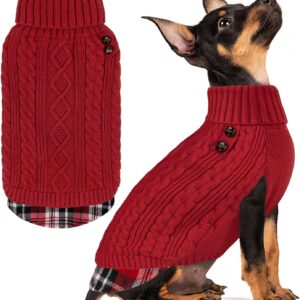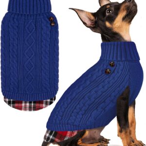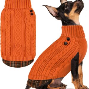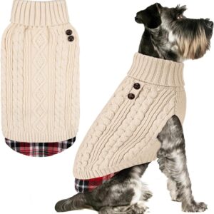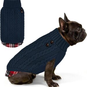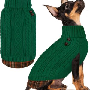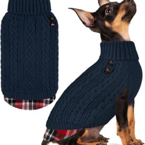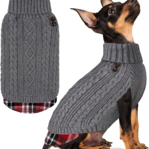 Dog Sweater Soft Pullover Dog Sweaters for Small Dogs Male Warm Turtleneck Small Dogs Sweater with Gingham Patchwork Stretchy Knitwear Cat Clothes Comfy Pet Coat for Fall Winter Cold Weather