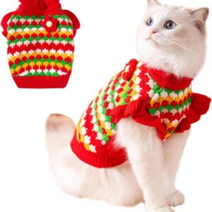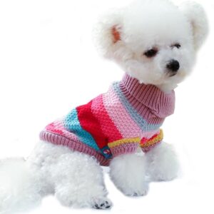 Small Dog Sweater, Knitted Tulip Cat Sweater, Warm Thick Holiday Puppy Clothes for Small Dog Girl,Cold Weather Outfit for Kitten Chihuahua Yorkie Teacup Dachshund Pug (Pink, X-Small)
