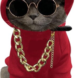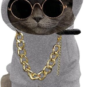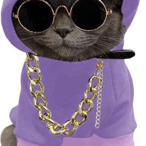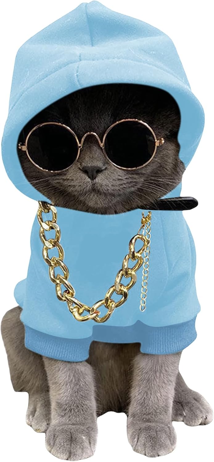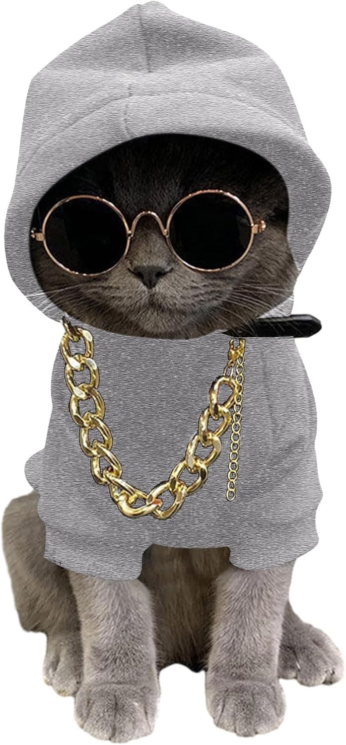 3Pcs Dog Hoodie Cat Apparel Dog Custume Set with Necklace and Sunglasses Pet Clothes for Puppy Small Medium Dogs Cats Multicolor S