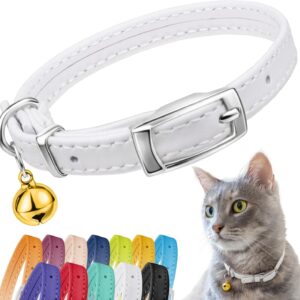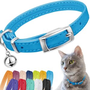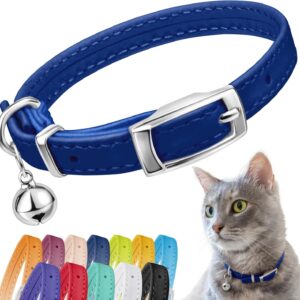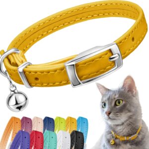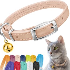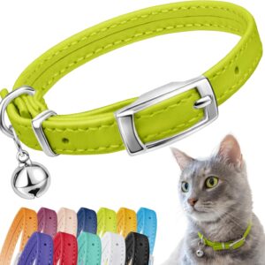 - This beautiful handmade cat-safe leather cat collar comes with bright-colored tiny metal bell. Color of the bell may vary.
