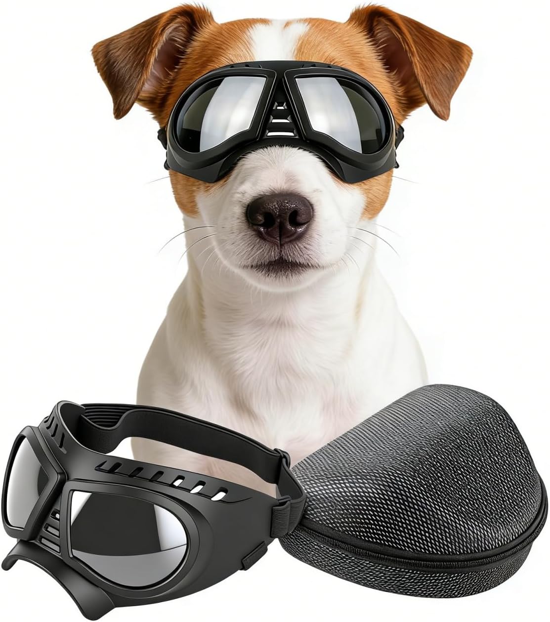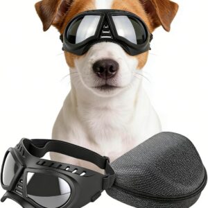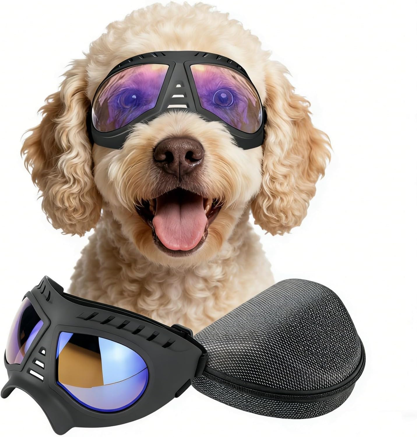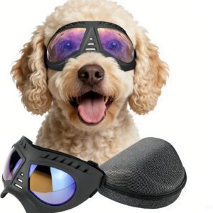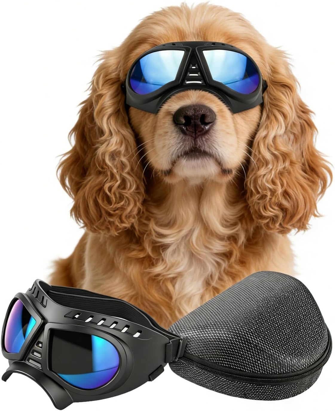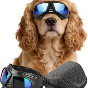 - focus on researching pet supplies, these dog goggles are authorized by , which made of ultrahard lenses, soft TPE frame and 2 adjustable elastic straps, durable and sturdy.