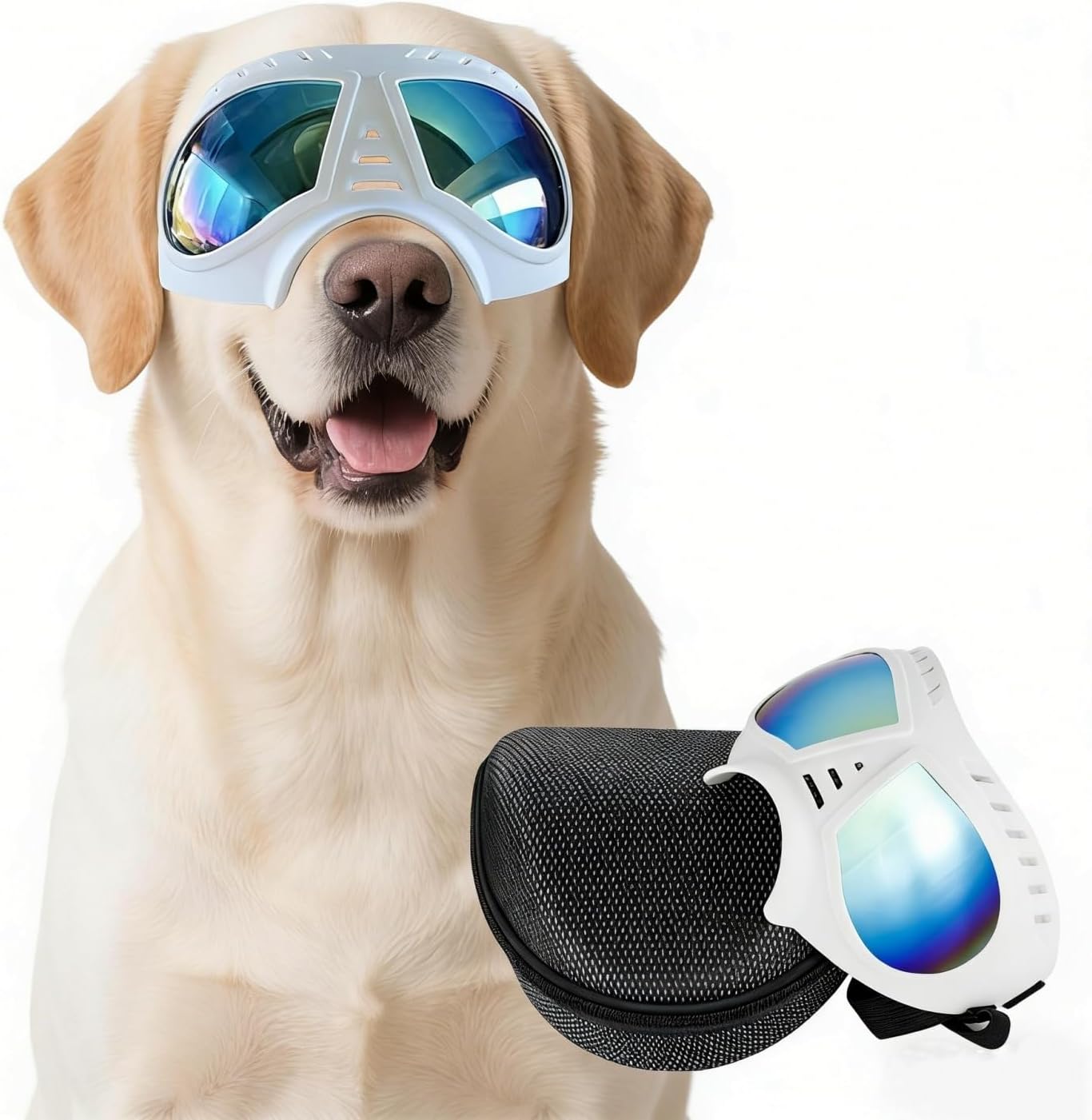 - Our large dog sunglasses accord with UV rate standard, lenses are UV-resistant and anti-glare. Frame vents can disperse the inside fog, improve the safety of protecting dog’s eyes.