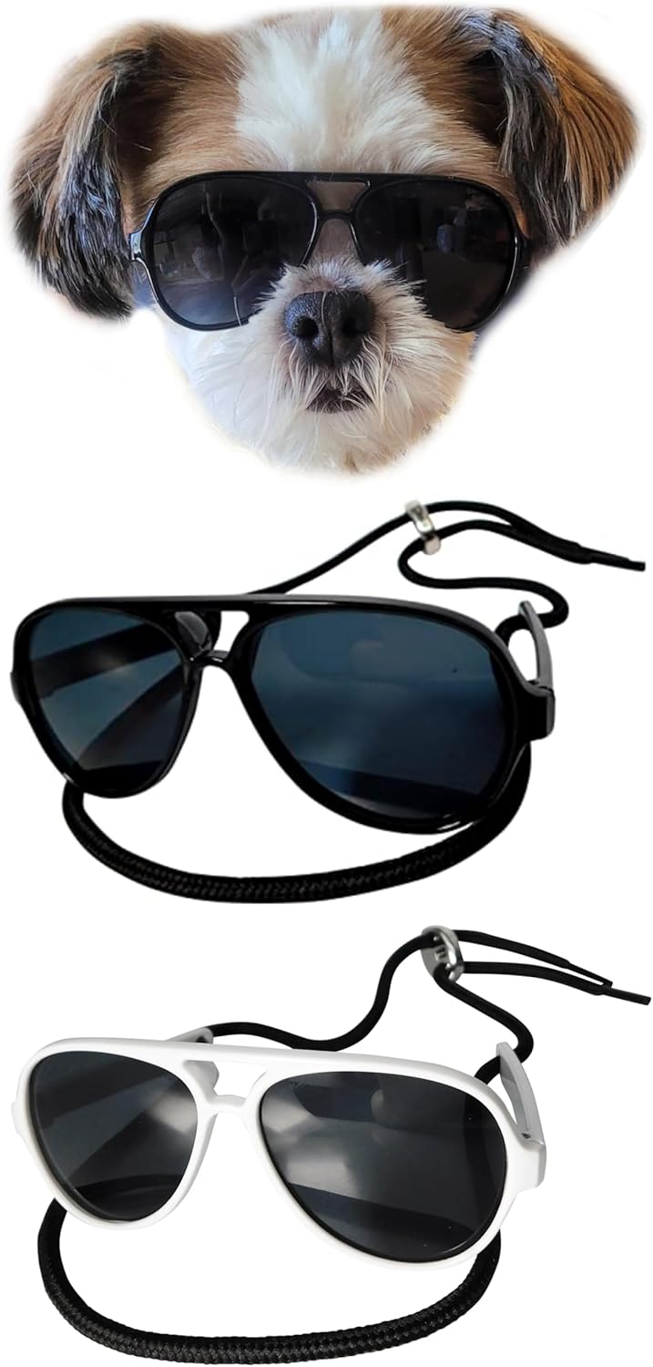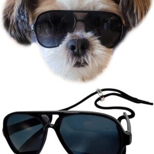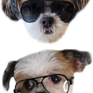 Small Dog Breed up to 15lbs Cat Pet Aviator Sunglasses Glasses (Black)