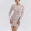 Product Name: Striped Lace-Knit Maxi Dress with Round Neck – Summer Long Sleeve