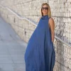 TUOYI Women Cotton Long Sleeve Loose Casual Dresses Maxi Dresses Sundress