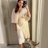 Summer Roman Square Collar Tunic Slim Casual Midi Dress For Women Sleeveless Empire Lace Dress